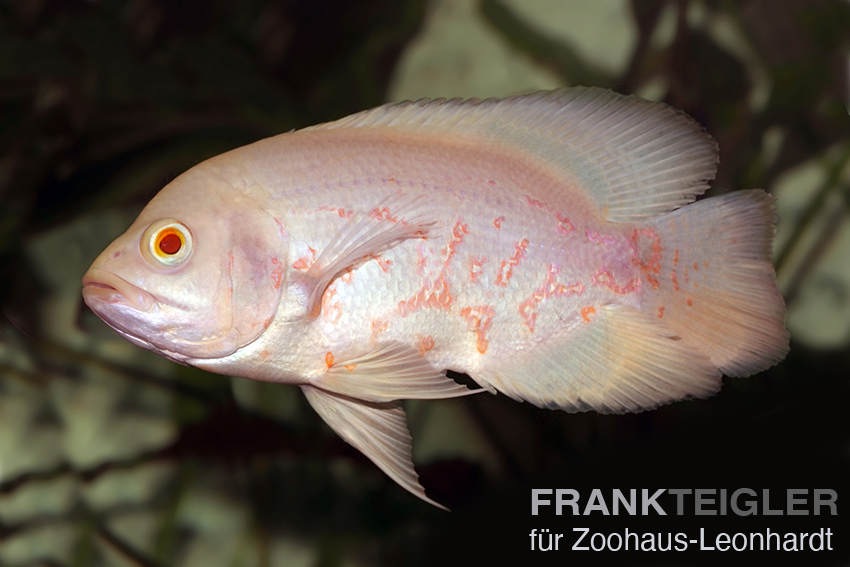 Bei Astronotus ocellatus ocellatus ‚RED-ALBINO‘ handelt es sich um einen Offenbrüter, bei dem der zumeist transparente Laich für andere Tiere sichtbar abgelegt wird. Die eigene Nachzucht im Aquarium ist möglich.