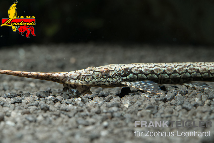 Farlowella acus stammt aus langsam fließenden Flüssen der La Plata Region und wird bis zu 15cm groß. Aufgrund seiner Größe benötigt er ein kleines Aquarium. In der Regel hält sich Farlowella acus im unteren Bereich des Aquariums auf, dessen Bodengrund aus Sand bestehen sollte. Aquarienpflanzen und Röhren als Versteck- oder Rückzugsmöglichkeit tragen zum Wohlbefinden der Tiere bei. Als Einrichtung sollten auch Wurzeln angeboten werden. Farlowella acus lässt sich prima mit friedlichen Arten vergesellschaften.