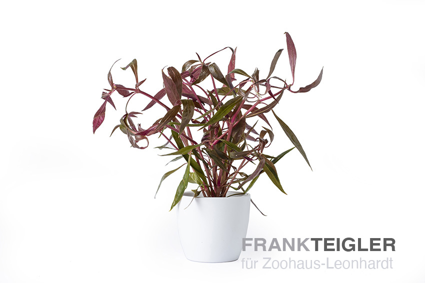 Beschreibung: Auffällige, rot bis purpur gefärbte Stängelpflanze mit länglichen Blättern. Sehr dekorativ und ein starker Farbakzent im Aquarium.