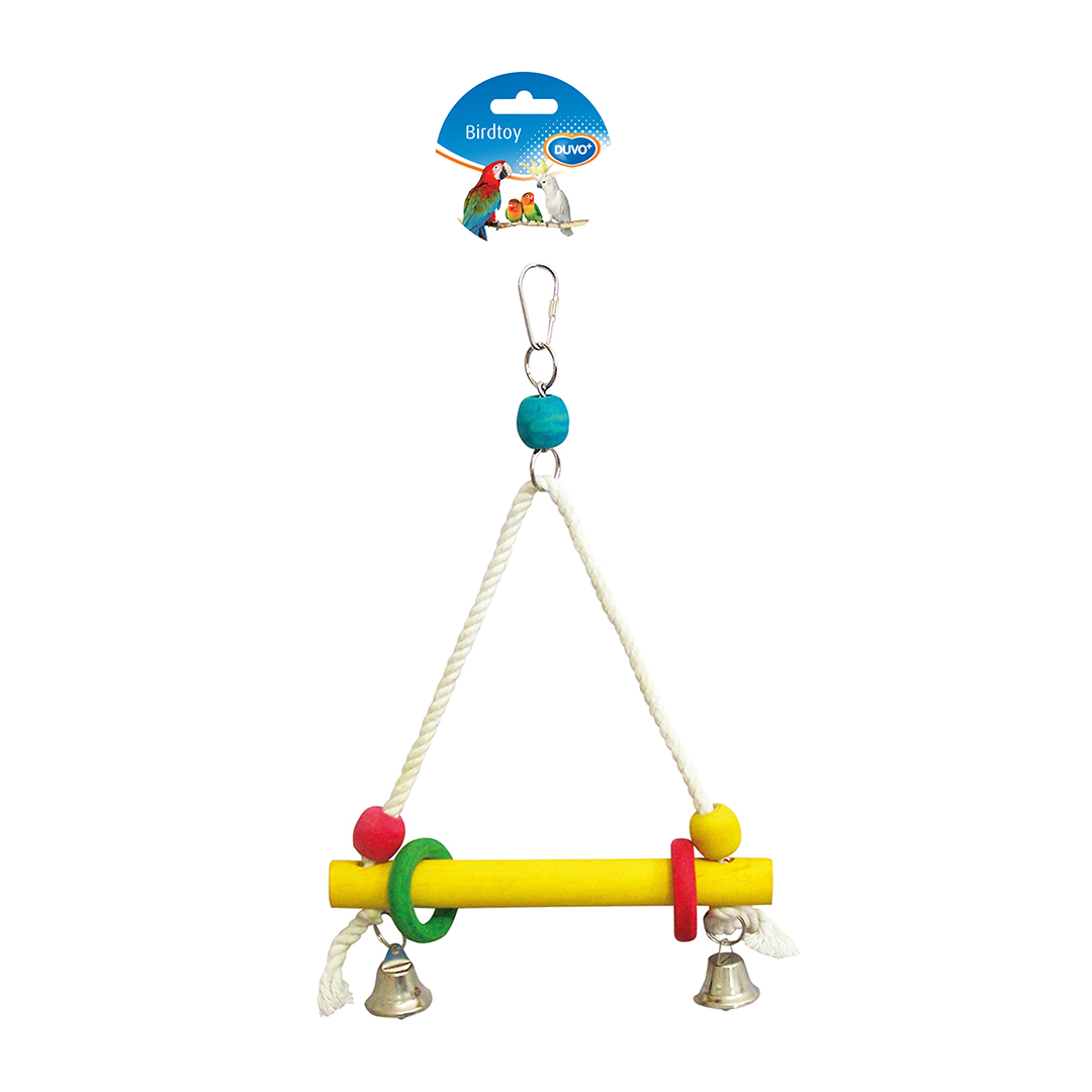 Vögel lieben insbesondere die farbigen Spielzeuge. Sie mögen es, an einem Baumwollknoten mit Lederbändern, Holzwürfeln oder Glocken herumzupicken und zu schaukeln. Diese Knoten sorgen für die Unterhaltung Ihrer Vögel und sind ein lustiges Spiel, das leicht in jedem Typus Vogelbauer aufgehängt werden kann.