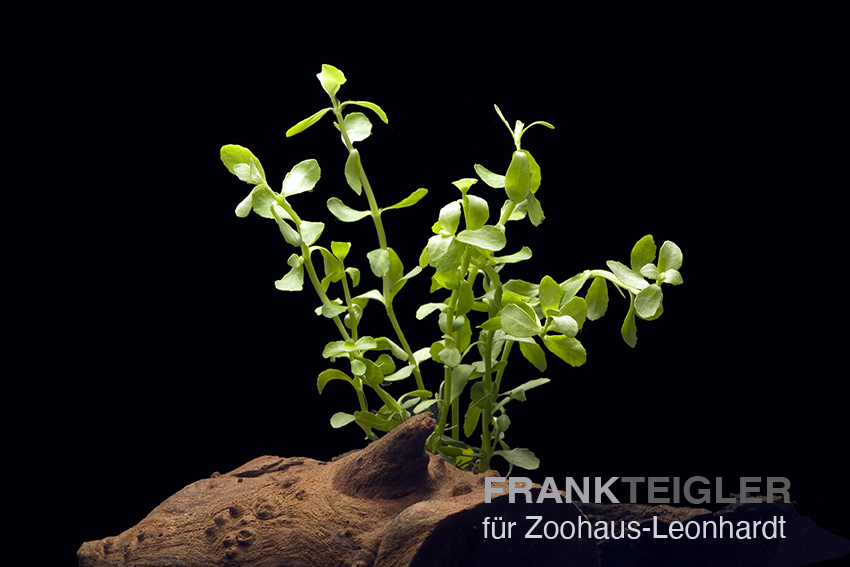 Bacopa monnieri ist eine robuste, hell- bis mittelgrüne Stängelpflanze mit fleischigen, rundlich-ovalen Blättern. Sie wächst aufrecht, verzweigt sich bei regelmäßigem Schnitt gut und wirkt im Aquarium ruhig und natürlich. Auch als Sumpf- und Teichpflanze bekannt.