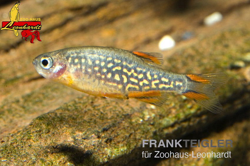 Celestichthys margaritatus, lange Zeit unter dem Namen Danio margaritatus im Handel anzutreffen, wird bis zu 2,5cm groß.