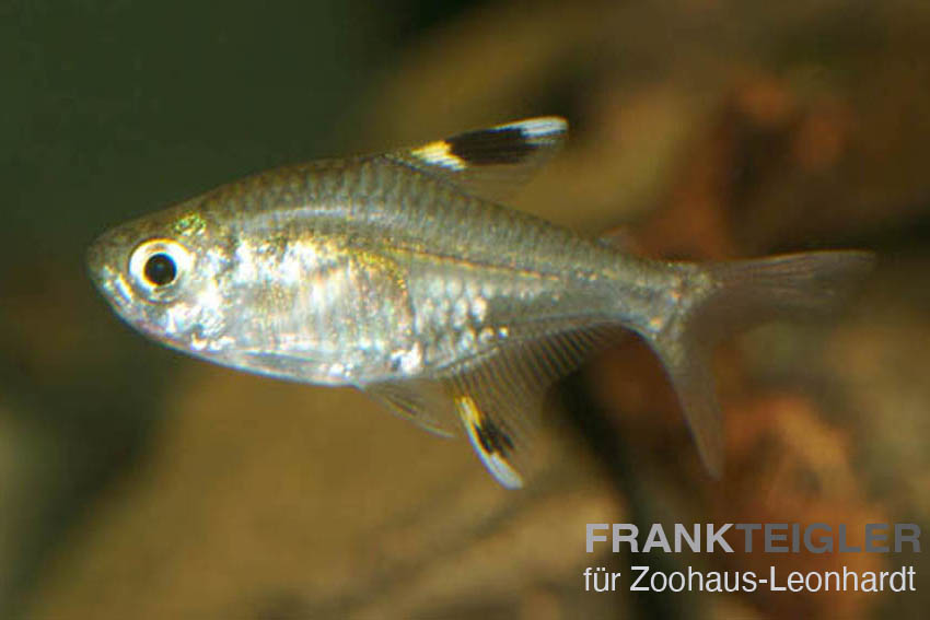 Pristella maxillaris wird bis zu 4cm groß und benötigt ein kleines Aquarium, das mit dunklem Sand oder Kies als Bodengrund und Wurzeln versehen ist. Aquarienpflanzen als Versteck- oder Rückzugsmöglichkeit tragen zum Wohlbefinden der Tiere bei.