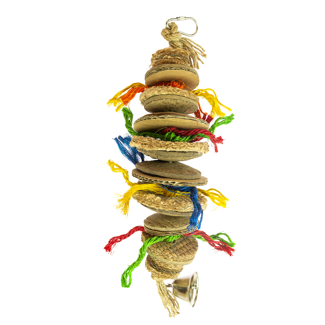 Vögel mögen bunte Spielzeuge sehr gern. Dies Spielzeug aus Sisal, Pappe und Kokos von Duvoplus eignet sich wunderbar zum Spielen oder Knabbern. Es hält Ihre Vögel aktiv, und Sie können es mit dem Haken leicht an jeder Voliere befestigen. Das Spielzeug eignet sich für alle Arten von Vögeln.